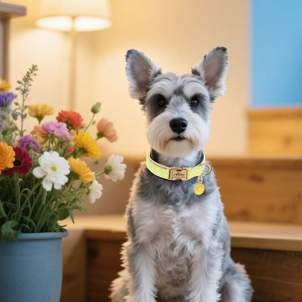 Collar personalizado para perro, etiqueta grabada con el nombre del animal y telefono del propietario.